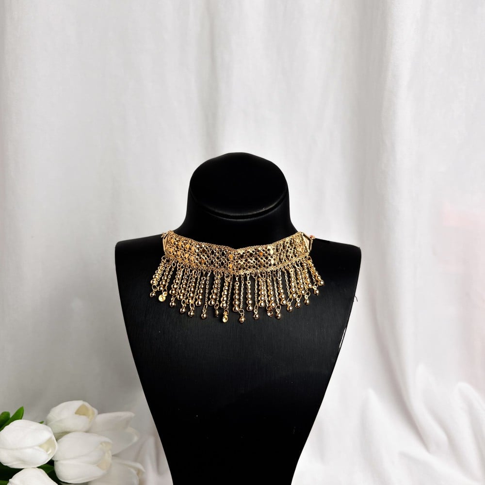 مخنق بفاخمة ملكية ذهب صافي عيار 21 بوزن 17.4 جرام, بتصميم ذو نعومة وزهاوة ذهبية راهية , اطلبية الان واستمتعي بتجربة الملكات
