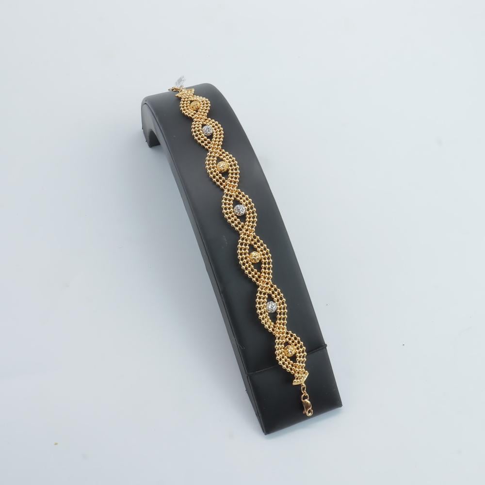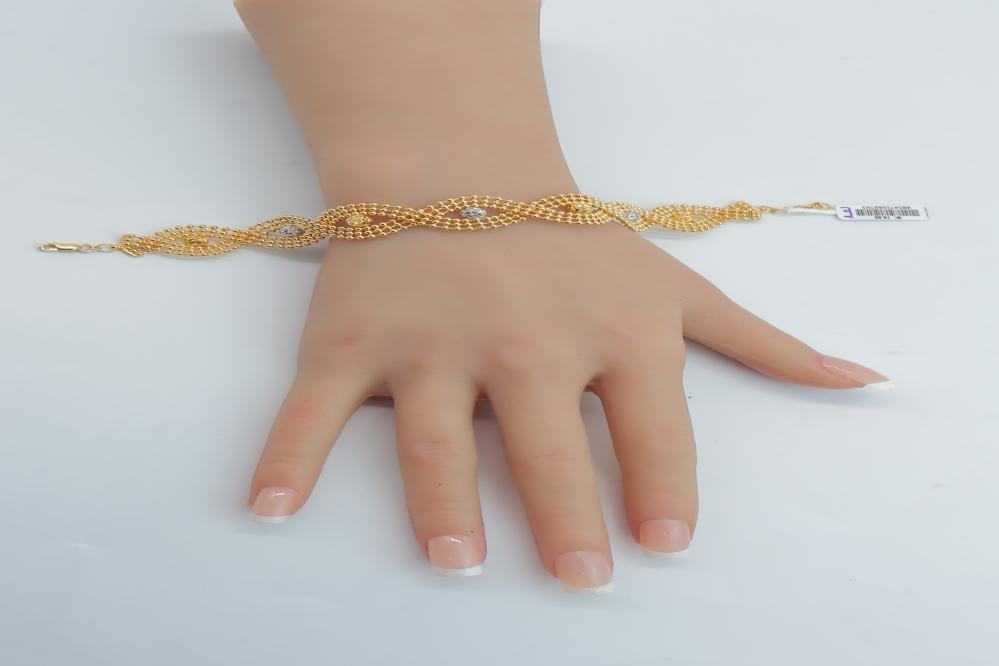 💛 أضيفي لمسة عصرية فخمة لإطلالتك مع اسوارة ذهب المعقود عيار 21 بتصميم الكرات الملونه وزن 19 جرام، الخيار المثالي لكل من تبحث عن أساور ذهب فخمة للمناسبات الخاصة.
