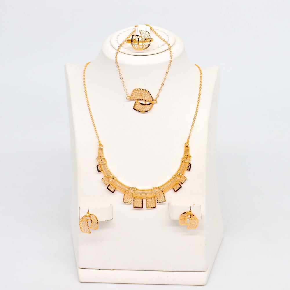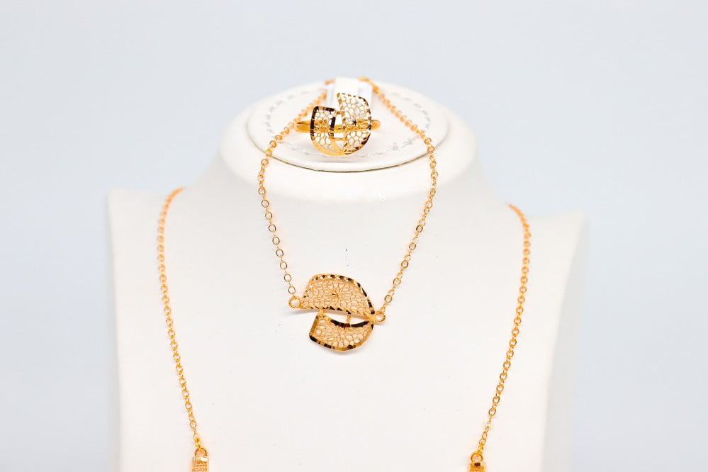 طقم ذهب عيار 21 بتصميمه الخيالي وبتفاصيله الجميله صنع ليعبر عن اطلاله تليق بك سيدتي ، اطلبية الان واستمتعي بذهب يدوم لأجلك.