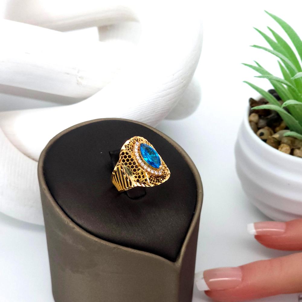 خاتم ذهب فخم عيار 21 بوزن 2.6 جرام بتصميم شرقي شبكي ولون سماوي، يضفي لمسة من الفخامة والتميز على إطلالتك. تصميمه الفريد يعكس الأناقة والذوق الرفيع، مثالي للمناسبات الخاصة. احصلي عليه الآن واستمتعي بعروضنا والتوصيل السريع إلى كافة مدن المملكة. ✨