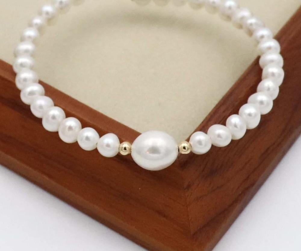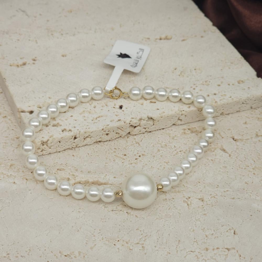 اسوارة لولو طبيعي بتصميم حبيبات ذهب عيار 18 – حجم كبير
