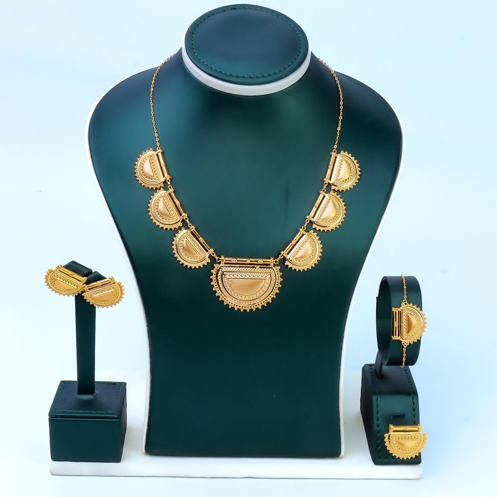 طقم ذهب شرقي بتصميم البراشي مميز عيار 21 وزن 17.75 جرام