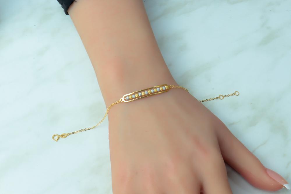 هذه السوارة الذهبية الخفيفة تمنحك مزيجًا مثاليًا من البساطة والفخامة، لتكون الرفيق المثالي للمرأة العصرية التي تبحث عن الأناقة المتجددة.