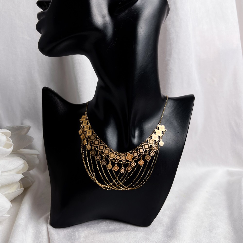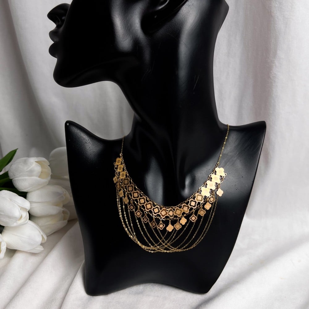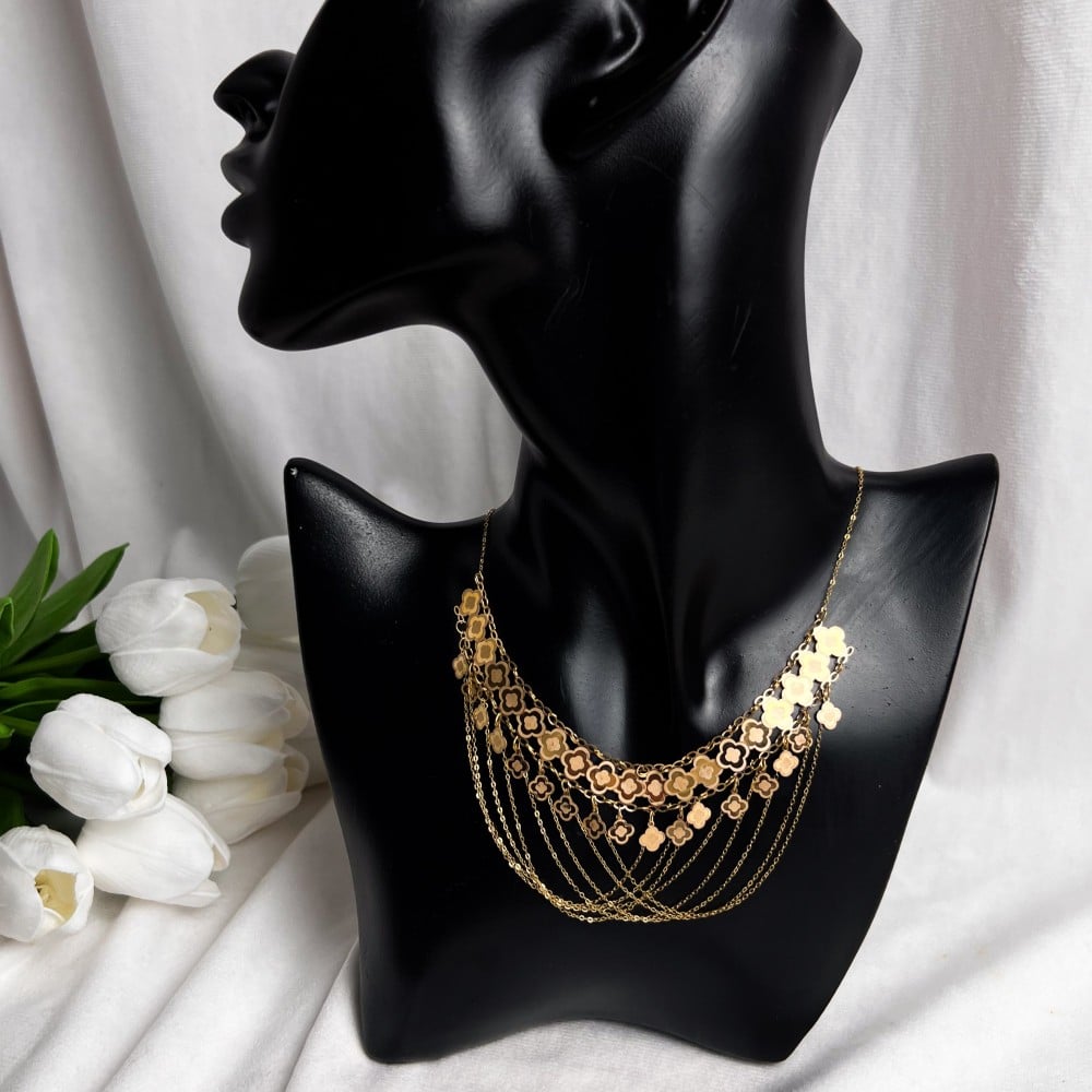 مخنق | تشوكر تصميم وزدة الفان كليف ذهب صافي عيار 21, بتصميم الشلاشل المتداخلة مع بعضها , ناعم ولبس يومي, يستاهلك وتستاهلينة , يستحق ان يكون ضمن مجوهراتك الذهبية الناعمة