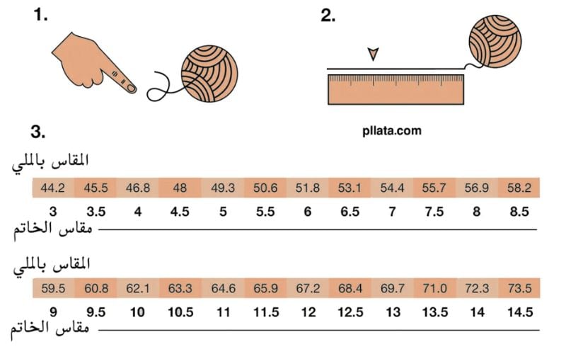 الطريقة الثانية ( في حال عدم وجود خاتم ) معرفة قياس مقاس الخاتم: