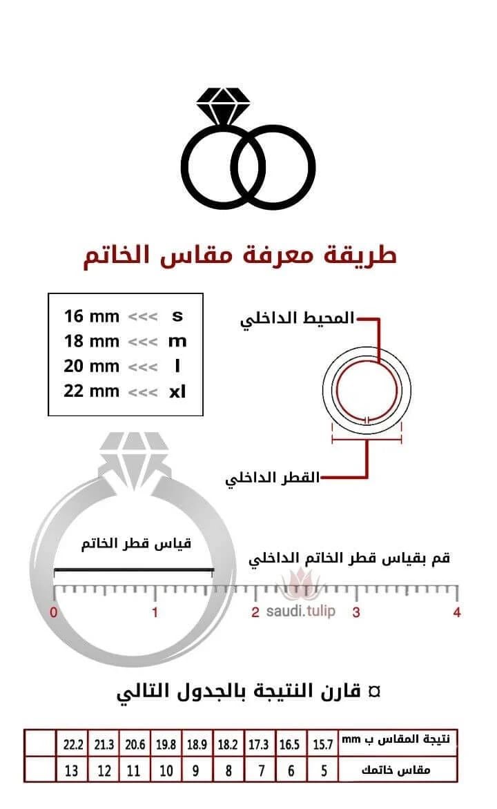 - ثم بعد ذالك تواصلي معنا على رقم الواتس اب ( 0501753550 ) لاعطائنا رقم المقاس لكي يتم تعديل الخاتم قبل ارسال الطلبية.
