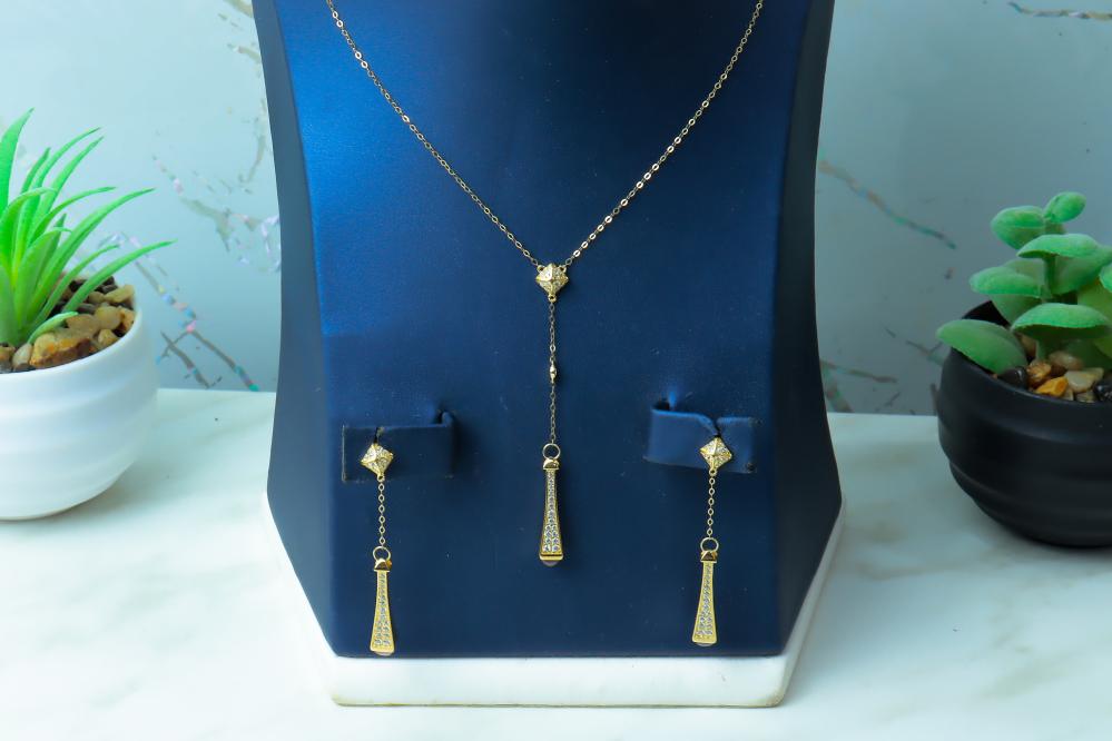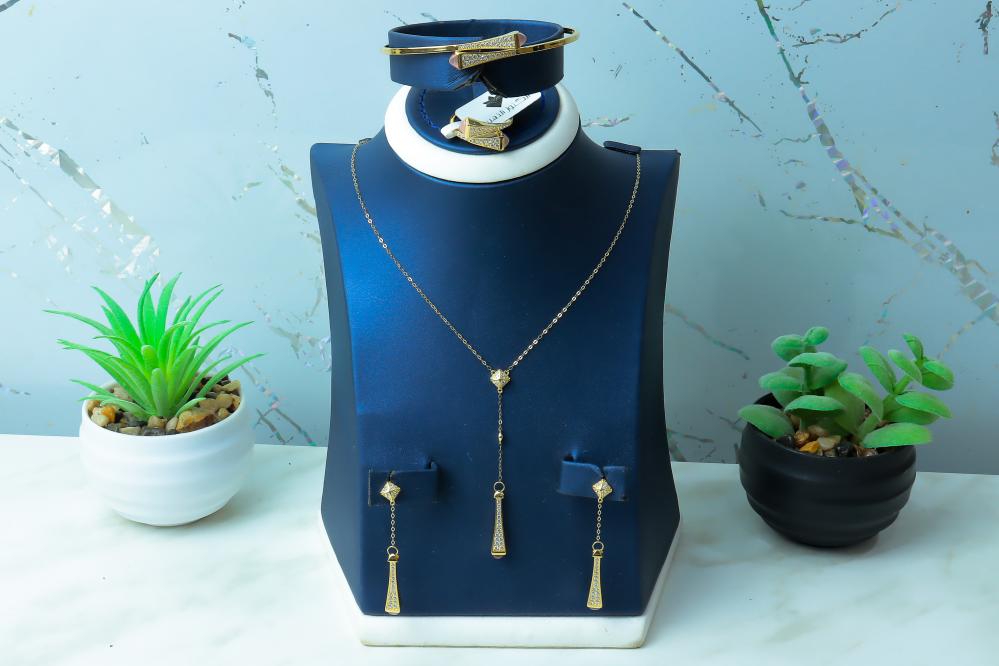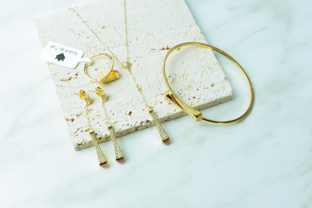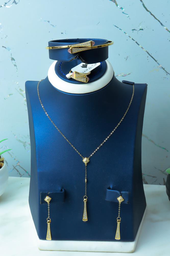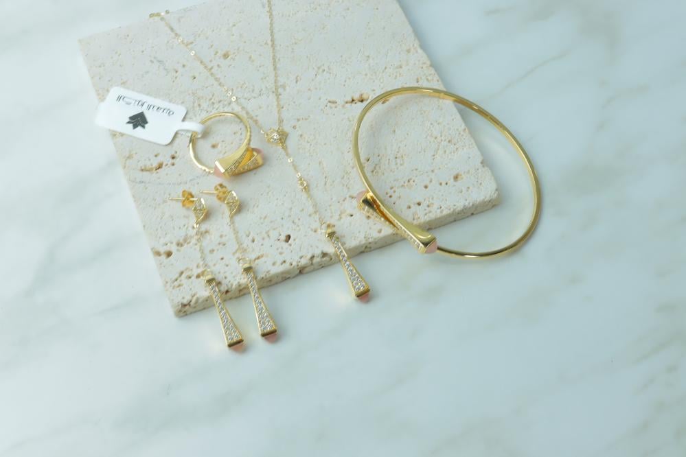 طقم المارلي الفريد باللون الوردي ذهب عيار 18 وزن 12.7 جرام
