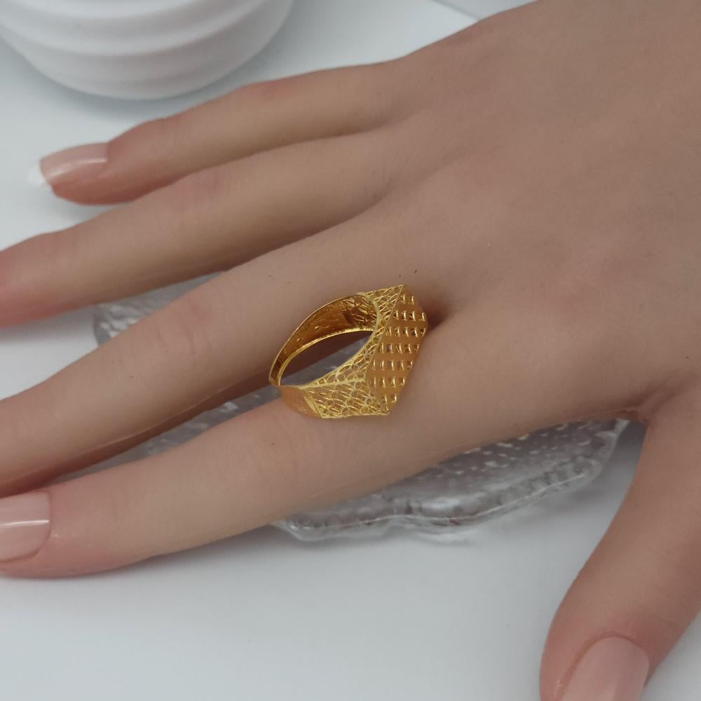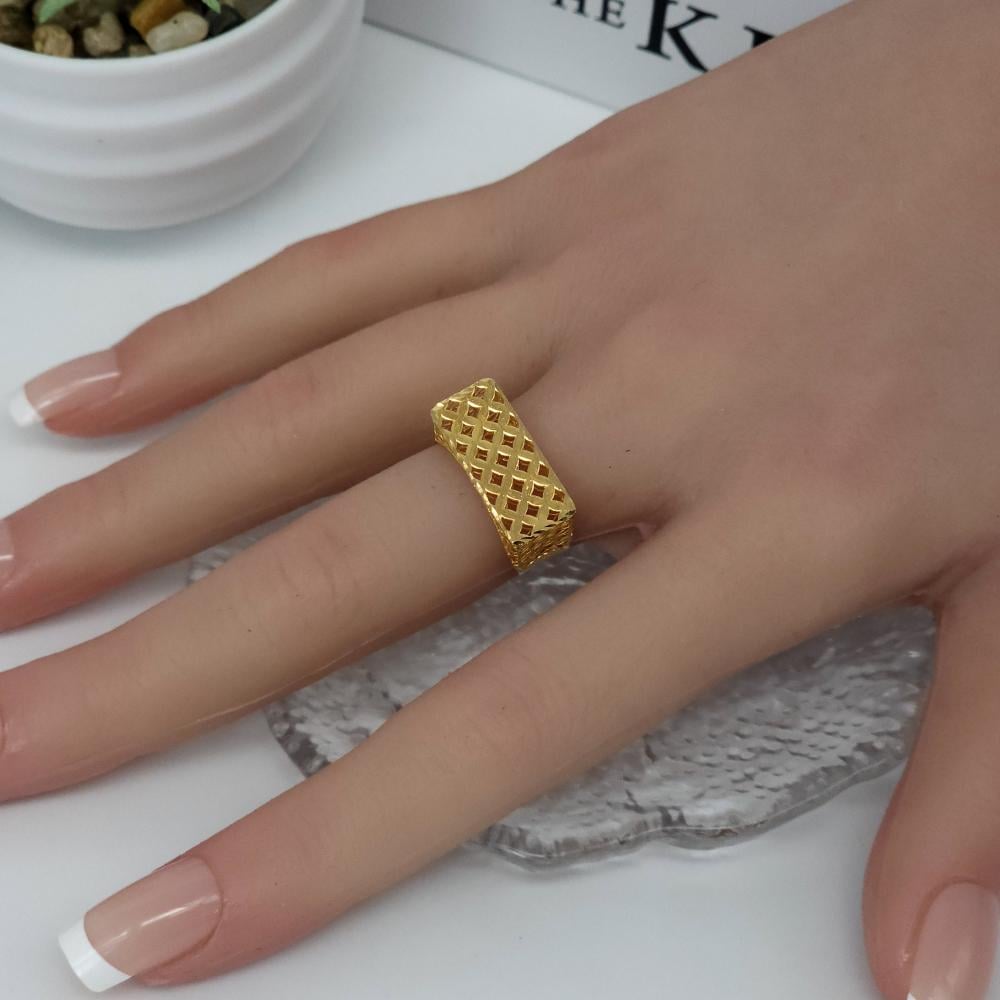 خاتم بشكل المستطيل تصميم 3D ذهب عيار 21 وزن 1.6 جرام