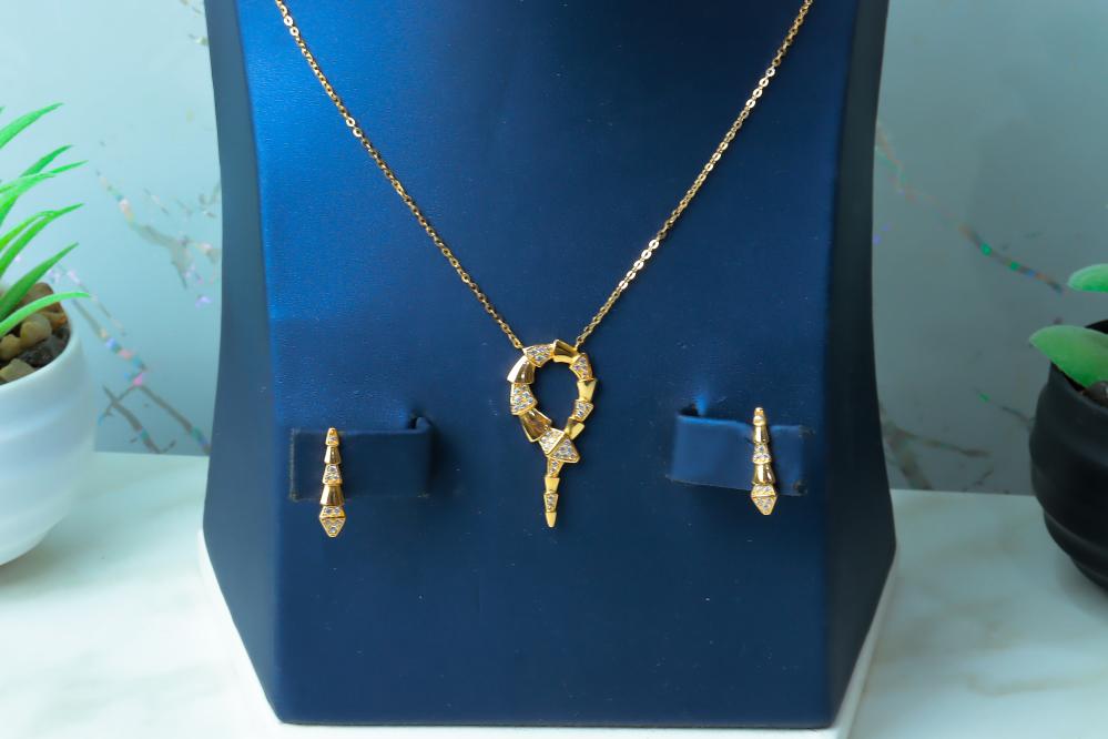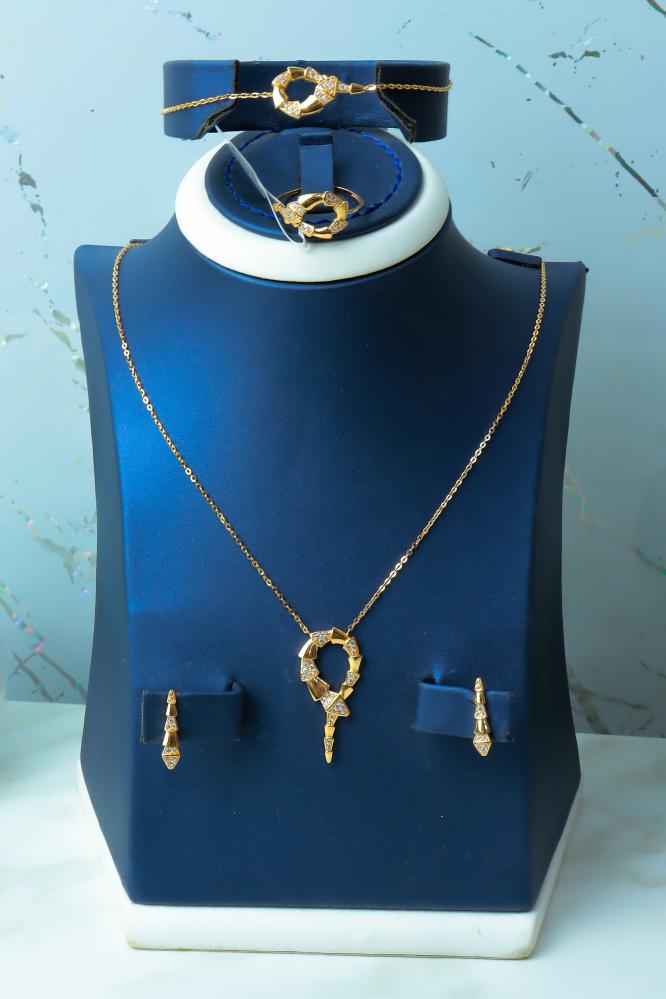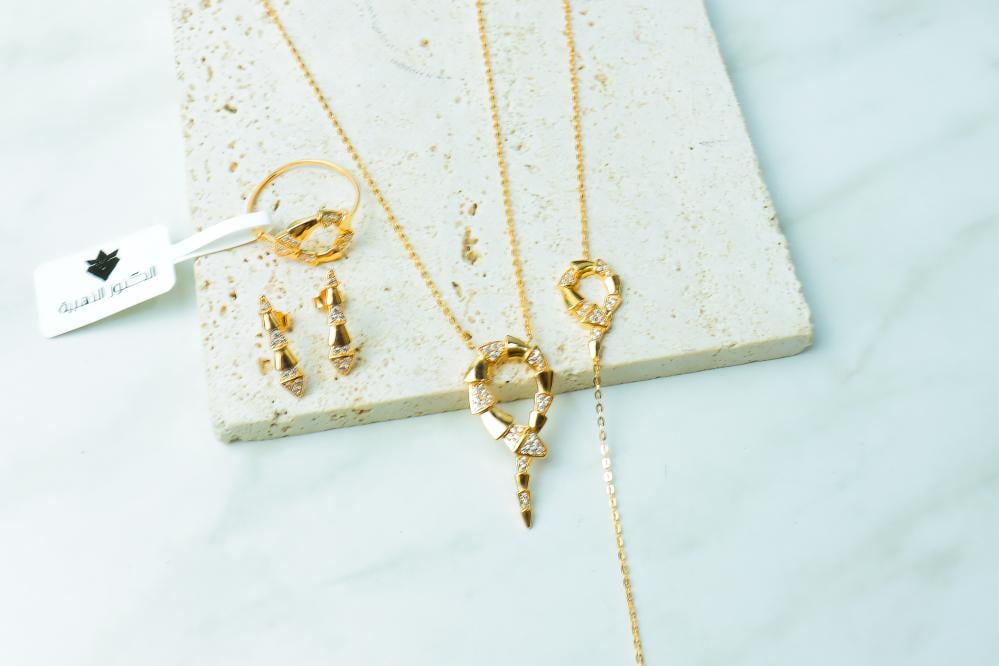 - التصميم: طقم فاخر من تصميم بلغاري الأنيق، مصنوع من ذهب عيار 21 بوزن 9 جرام. يتميز بتصميم الماسي الذي يجمع بين الفخامة والرقي، ليمنحكِ إطلالة مميزة ومشرقة. يجمع هذا الطقم بين البساطة في الشكل والفخامة في التفاصيل، مما يجعله مثاليًا للمناسبات الخاصة وللإطلالات اليومية التي تحتاج لمسة من التميز.