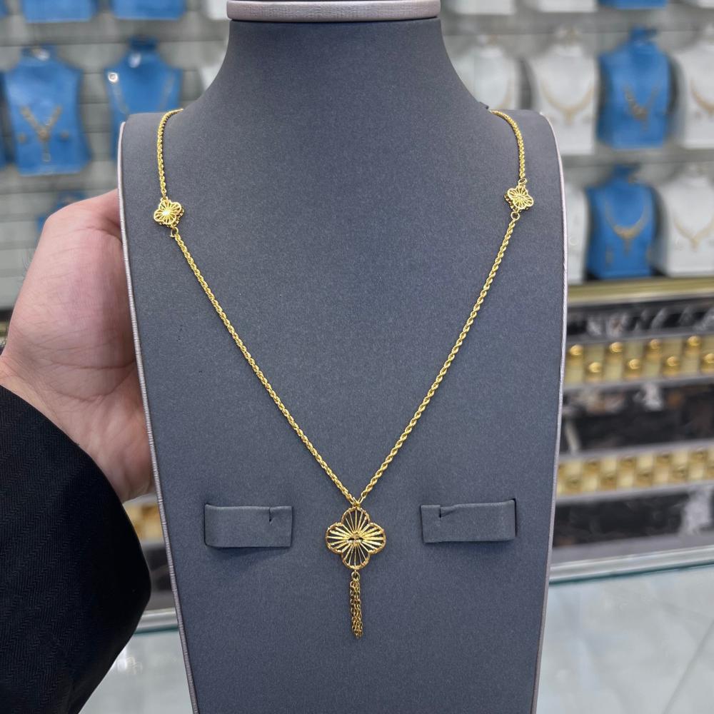 وصف المنتج: يتميز هذا السلسال بتصميمه الرائع على شكل وردة، الذي يجمع بين الفخامة والجمال. بوزنه المثالي وتصميمه المتقن، يُعد هذا السلسال الخيار الأمثل لإضافة لمسة من الأناقة والرقي على إطلالتك اليومية والمناسبات الخاصة مثل حفلات الزفاف، الأعياد، والاجتماعات الاجتماعية. ستضفي هذه القطعة الذهبية الفاخرة لمسة من الجاذبية والرقي على إطلالتك، لتكوني دائماً محط الأنظار.