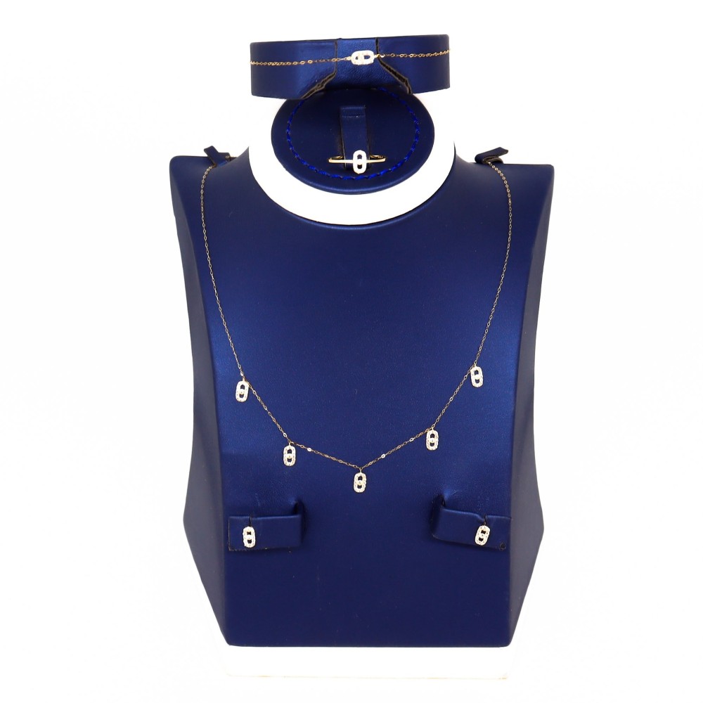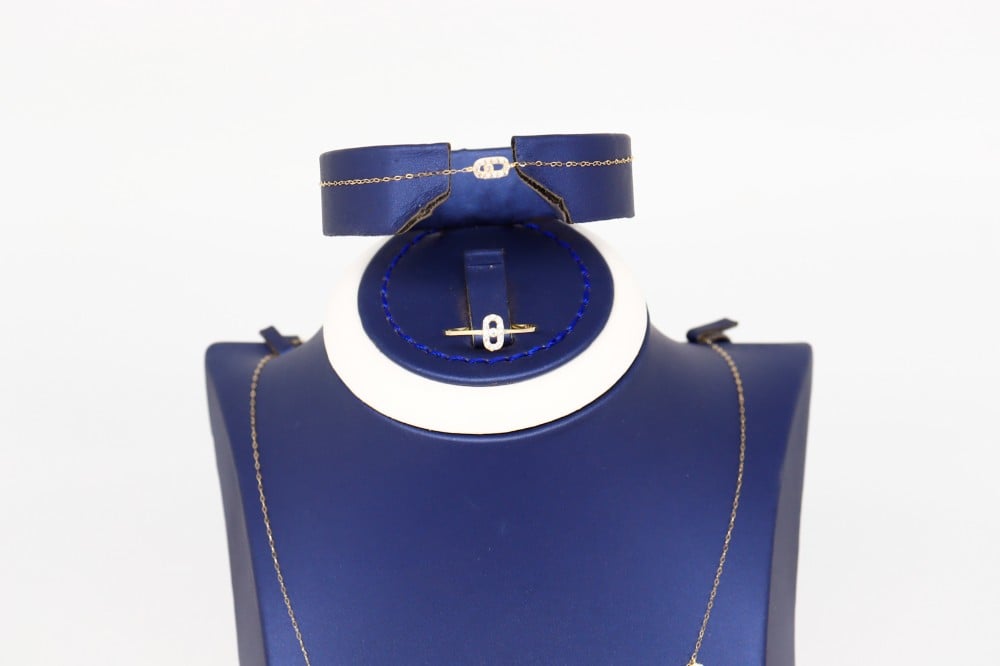 للباحثاتِ عن عذوبة التفاصيل، هُنا طقم تشوكر المسيكاء حيث كل كل قطعة مُصممة خِصِّيصًا لكِ أنتِ، في طاقمٍ مُكوَّن من إسوارة وخاتم وقرط وسلسال عيارة 18.