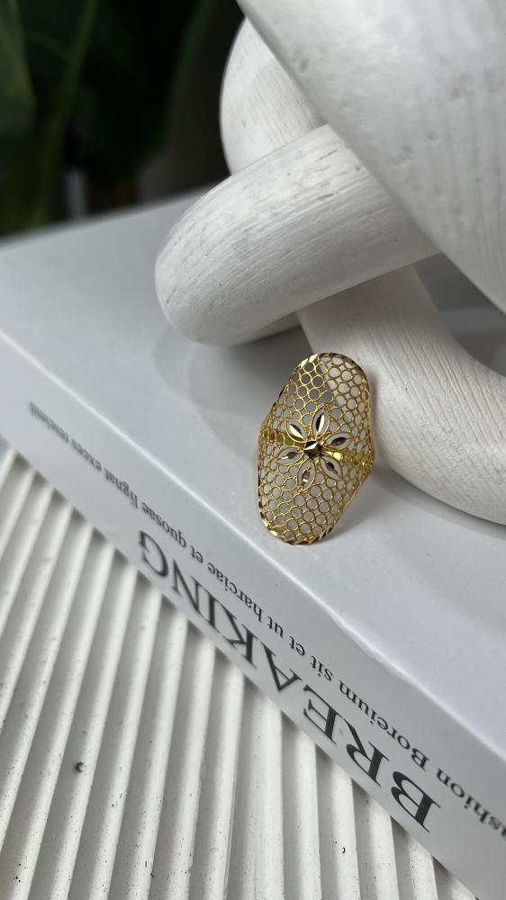 تألقي بإطلالة استثنائية مع خاتم الذهب الطويل عيار 21 بتصميمه الشبكي الفريد وزخرفته على شكل وردة. بوزن 3.2 جرام، يتميز بتفاصيله الدقيقة التي تبرز جمالك وتضفي لمسة من الرقي والتميز على يدك. تصميم الوردة يمنح الخاتم بريقاً فريداً وأناقة لا مثيل لها، ليكون قطعة مثالية تكمل إطلالتك بأسلوب عصري وفاخر.