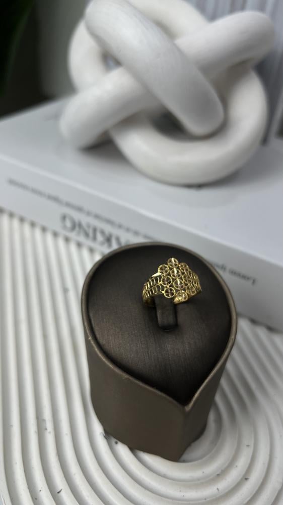 أضيفي لمسة من الأناقة العصرية لإطلالتك مع خاتم ذهب عيار 21 بوزن 1.2 جرام، يتميز الخاتم بتصميمه المبتكر الذي يضفي حيوية وبريقًا خاصًا ليدك، مما يجعله خيارًا رائعًا للإطلالات اليومية والمناسبات الخاصة. التصميم يجمع بين البساطة والتميز، ليبرز أسلوبك الراقي بطريقة مبهرة.