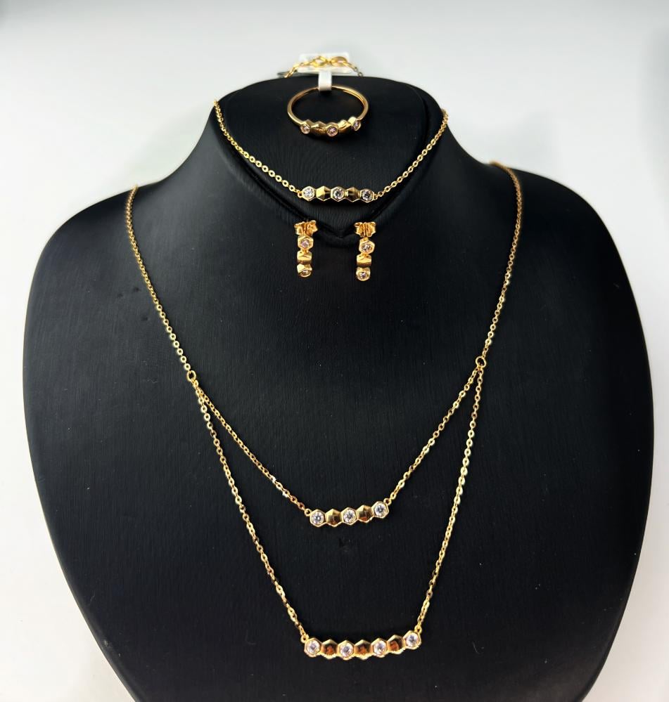 استمتعي بإطلالة استثنائية مع طقم ذهب عيار 21 بتصميم الشومية بوزن 8.2 جرام، يتميز بأناقته اللافتة وتفاصيله المستوحاة من بريق الألماس، مما يمنحك إطلالة متألقة تناسب كل المناسبات. هذا الطقم صُمم ليكون رمزًا للأناقة الراقية والجمال الفريد، ليبرز ذوقك الرفيع ويكمل مظهرك بأسلوب لا مثيل له.