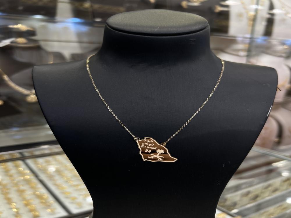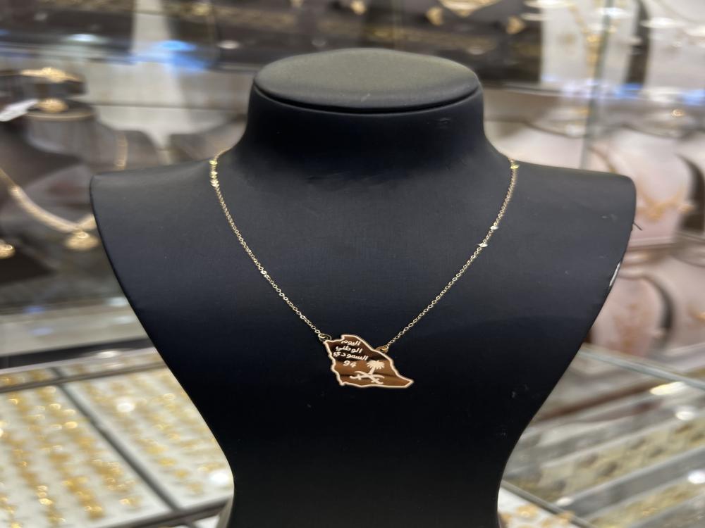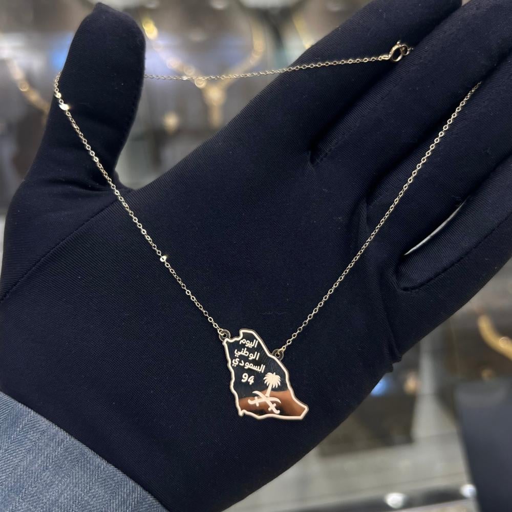 احتفلي بروح اليوم الوطني السعودي مع عقد ذهب عيار 18 بوزن 0.8 جرام. تصميمه البسيط والمميز يضيف لمسة خاصة لإطلالتك، ويعبر عن فخرك وحبك للوطن. هذا العقد الخفيف يناسب كل الأعمار، ويقدر يكون قطعة أساسية تلبسينها كل يوم أو تضيفينها لمجموعتك من المجوهرات الوطنية.