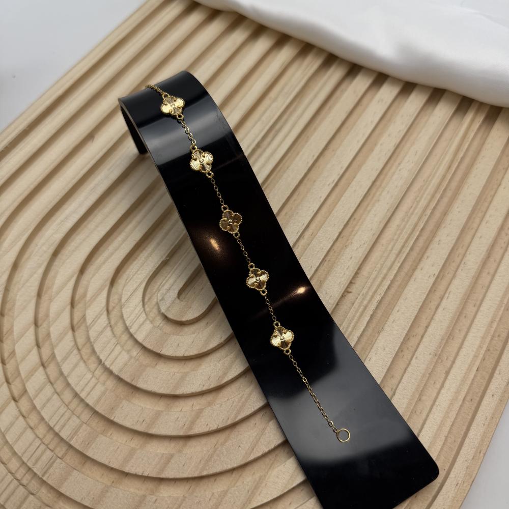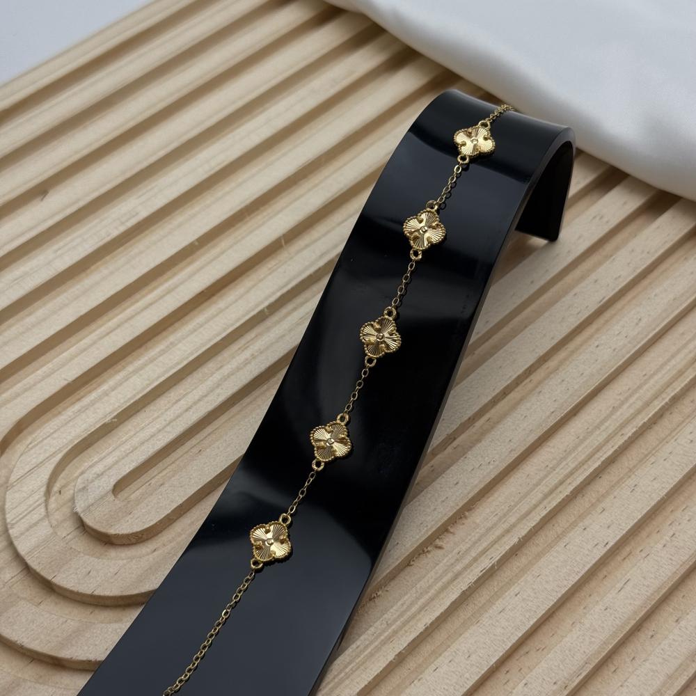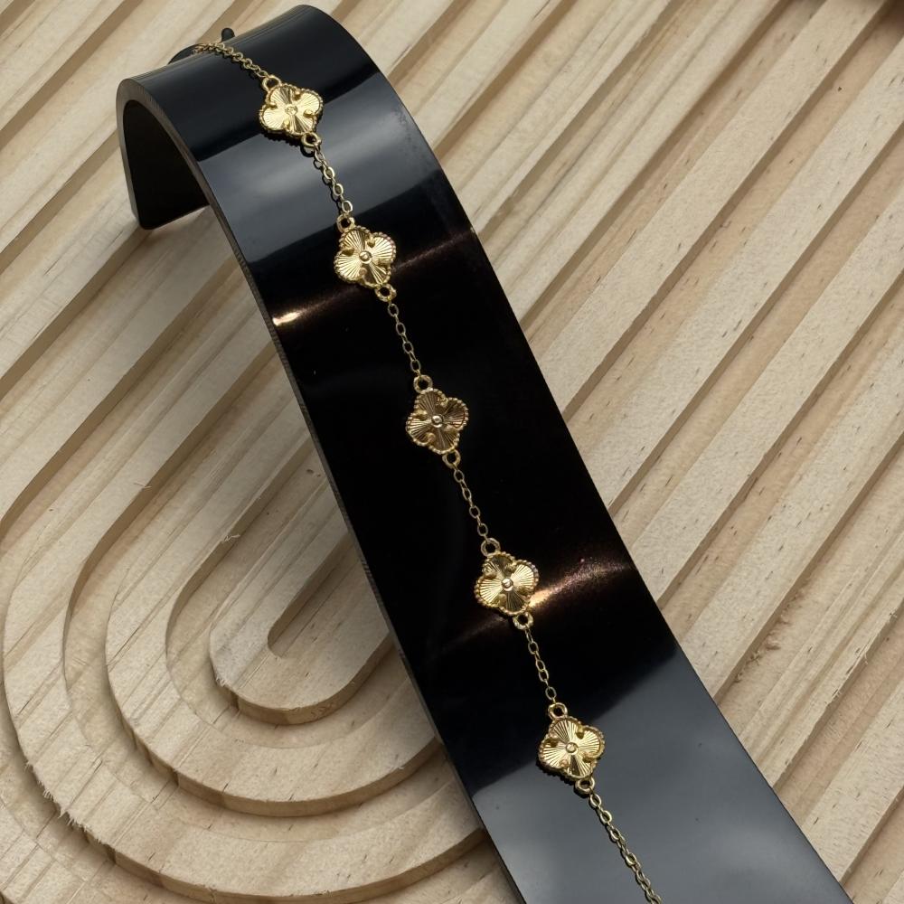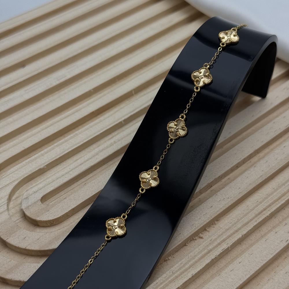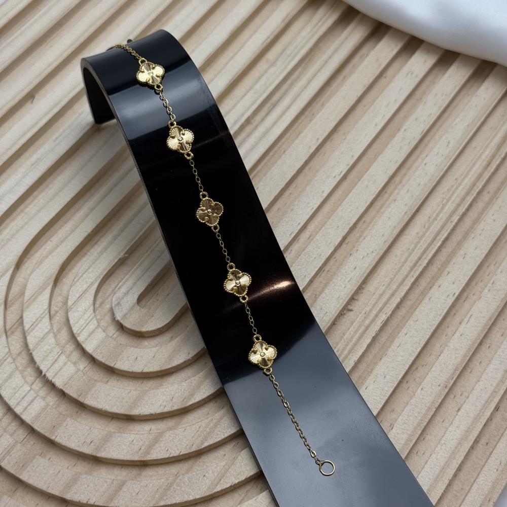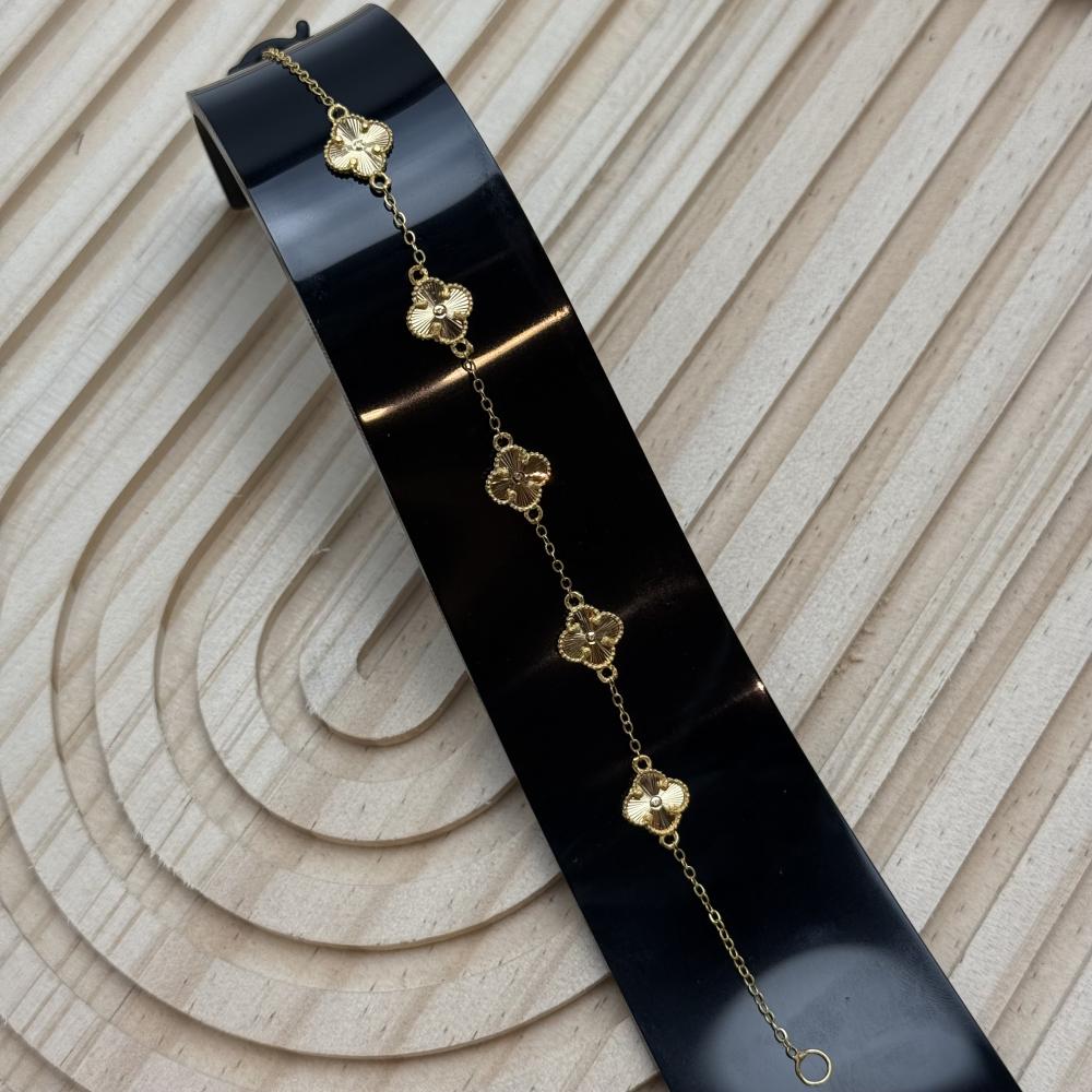 هذه السوارة الفاخرة مصنوعة من الذهب عيار 21، وتتميز بتصميمها الراقي والمميز. تتكون السوارة من خمس وردات جميلة تضفي عليها لمسة أنثوية راقية. يبلغ وزن السوار 3.6 جرام، مما يجعلها قطعة مثالية للإرتداء اليومي أو في المناسبات الخاصة. تتميز هذه السوارة بجودتها العالية وتفاصيلها المتقنة التي تجعلها قطعة أنيقة ومميزة تلفت الأنظار.