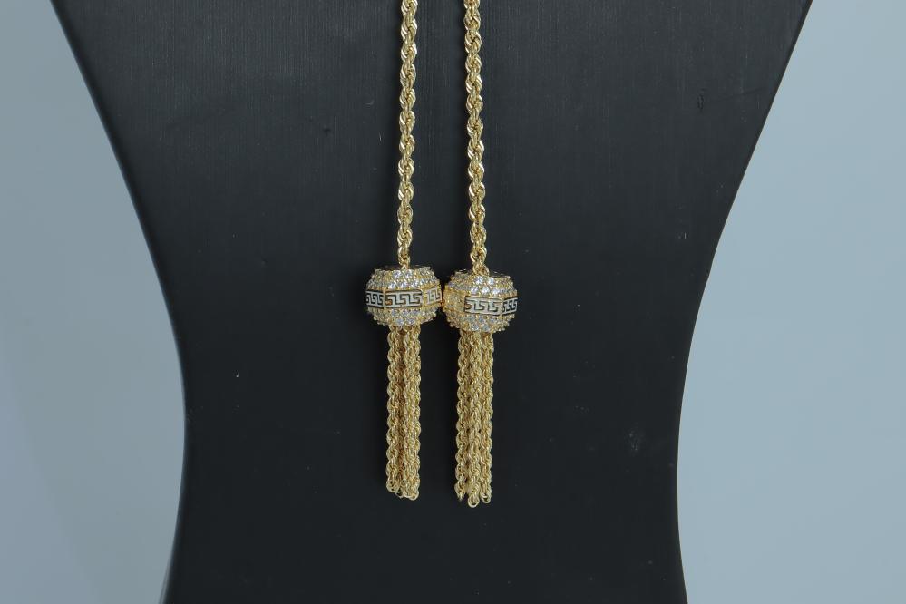 سبحة المبروم بتصميمها الجديد كليا المطعمة بلون الميناء الابيض بتصميم الماسي عيار 18 مزودة بكره السحب التي تسمح لك بالتكبير والتصغير من طول 40 سم الى طول 75 سم