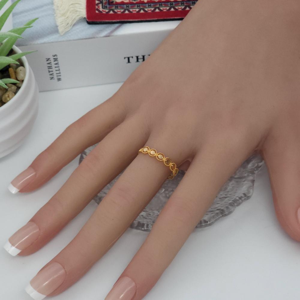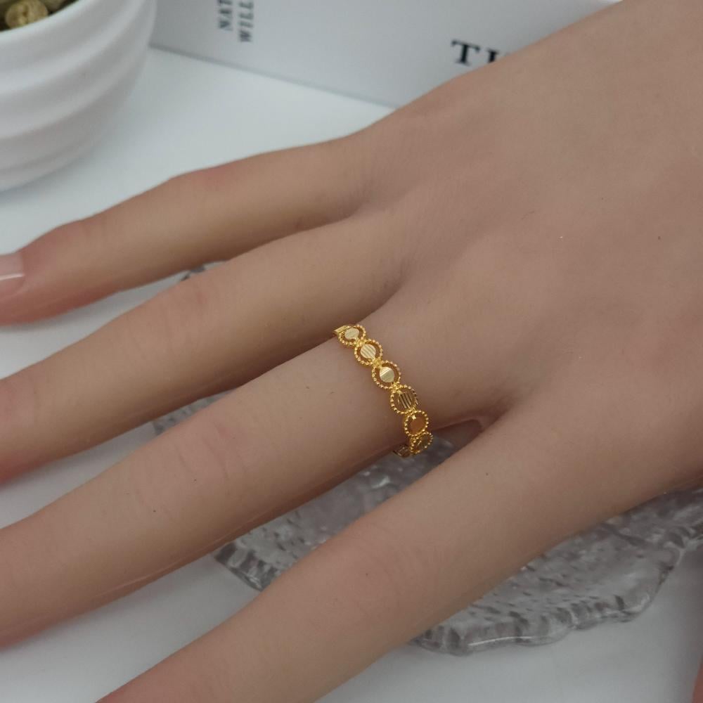 خاتم ذهب عيار 21 بتصميم حبات دائرية بوزن 0.8 جرام، يعكس أناقة بسيطة وسحر خاص. تصميمه الرقيق يناسب جميع المناسبات ويضيف لمسة من التميز لإطلالتك. احصلي على الخاتم الآن واستفيدي من عروضنا والتوصيل السريع إلى كافة مناطق المملكة. ✨