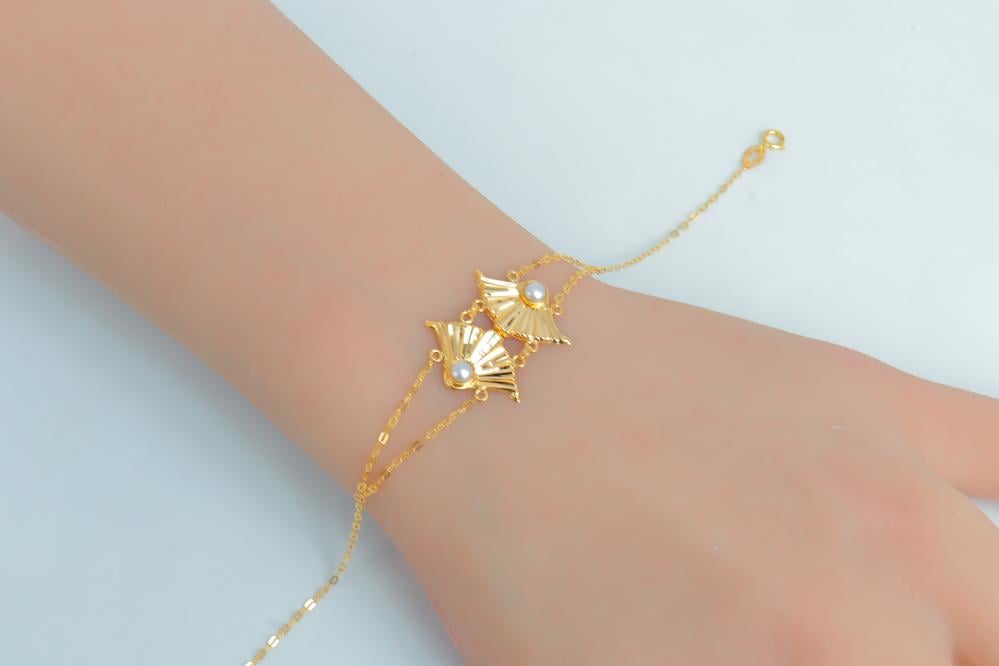 مع اسوارة ذهب عيار 21 بتصميم الصدفة المميز, استمتعي بجاذبية البحر وسحر الطبيعة.