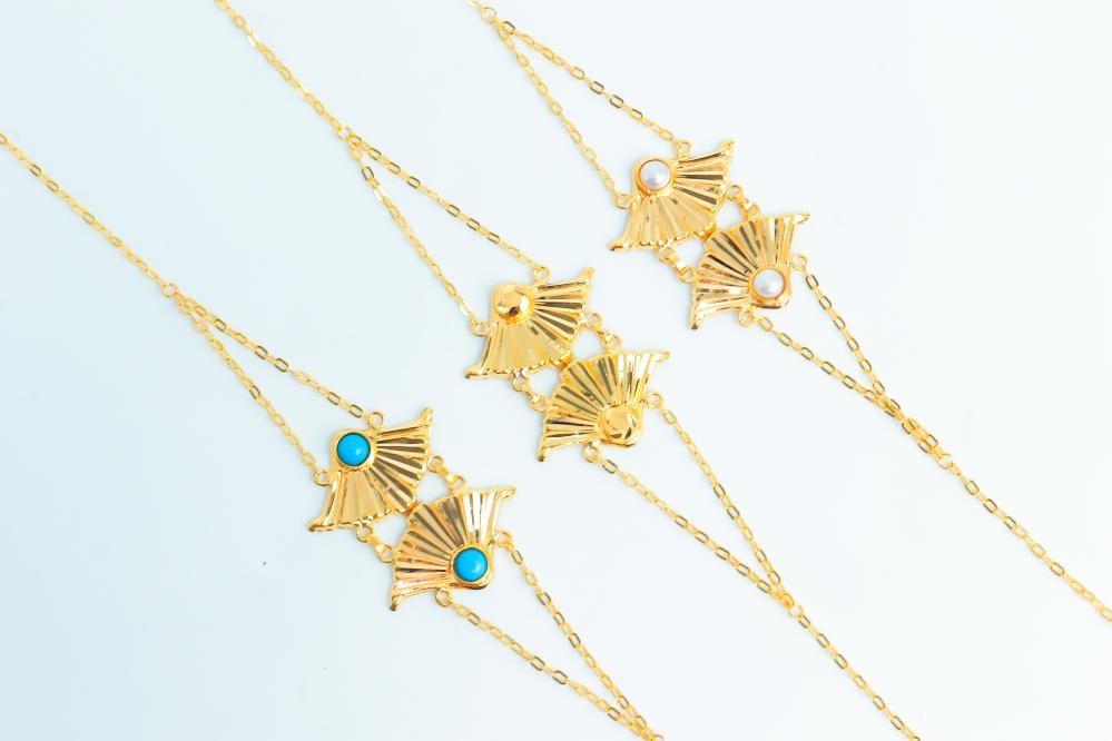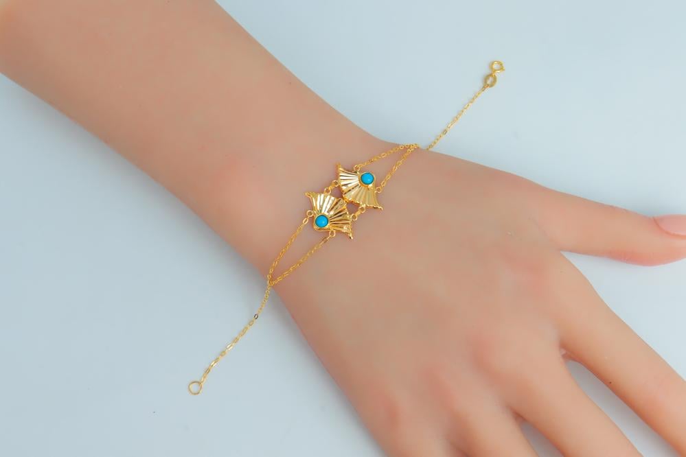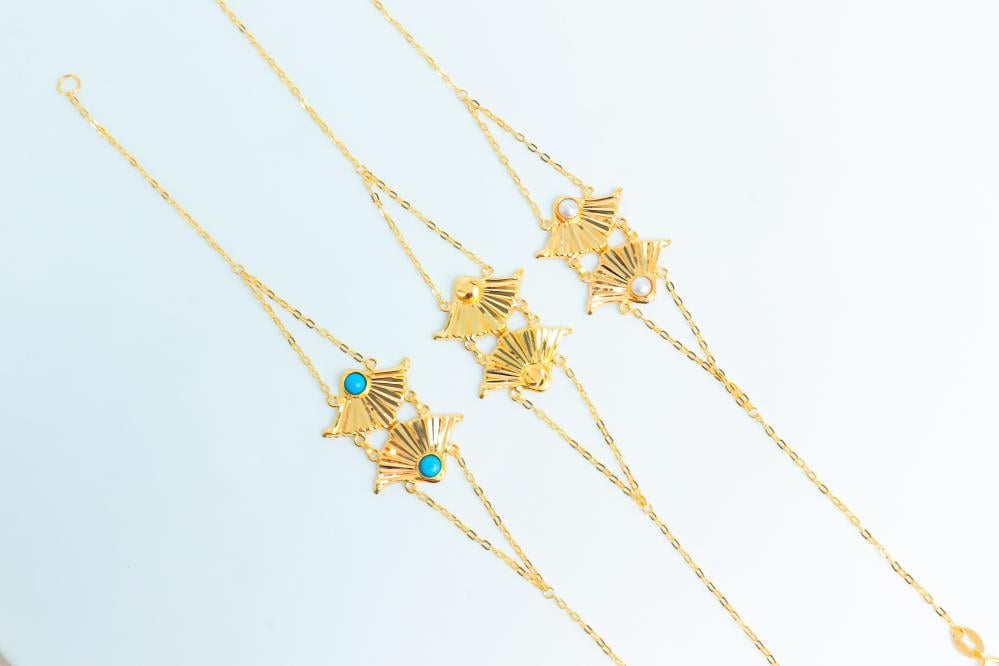 ✨ اختاري لونك المفضل الآن من اسوارة ذهب عيار 21 بتصميم صدفة (سادة – أبيض – فيروزي) وأكملي أناقتك بلمسة عصرية.